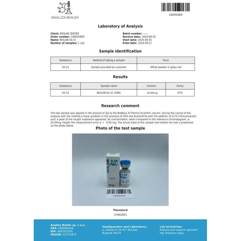 In präklinischen Studien wird SS-31 im Zusammenhang mit der Stabilität der mitochondrialen Membran, mit der Atmungskette zusammenhängenden Parametern, Markern für oxidativen Stress (ROS) und Veränderungen der zellulären Energieproduktion (z. B. ATP-bezogene Indikatoren) in experimentellen Modellen analysiert. Die Verbindung wird auch in Forschungsprojekten zu Mechanismen der mitochondrialen Schädigung und der zellulären Reaktion auf Stressfaktoren untersucht.